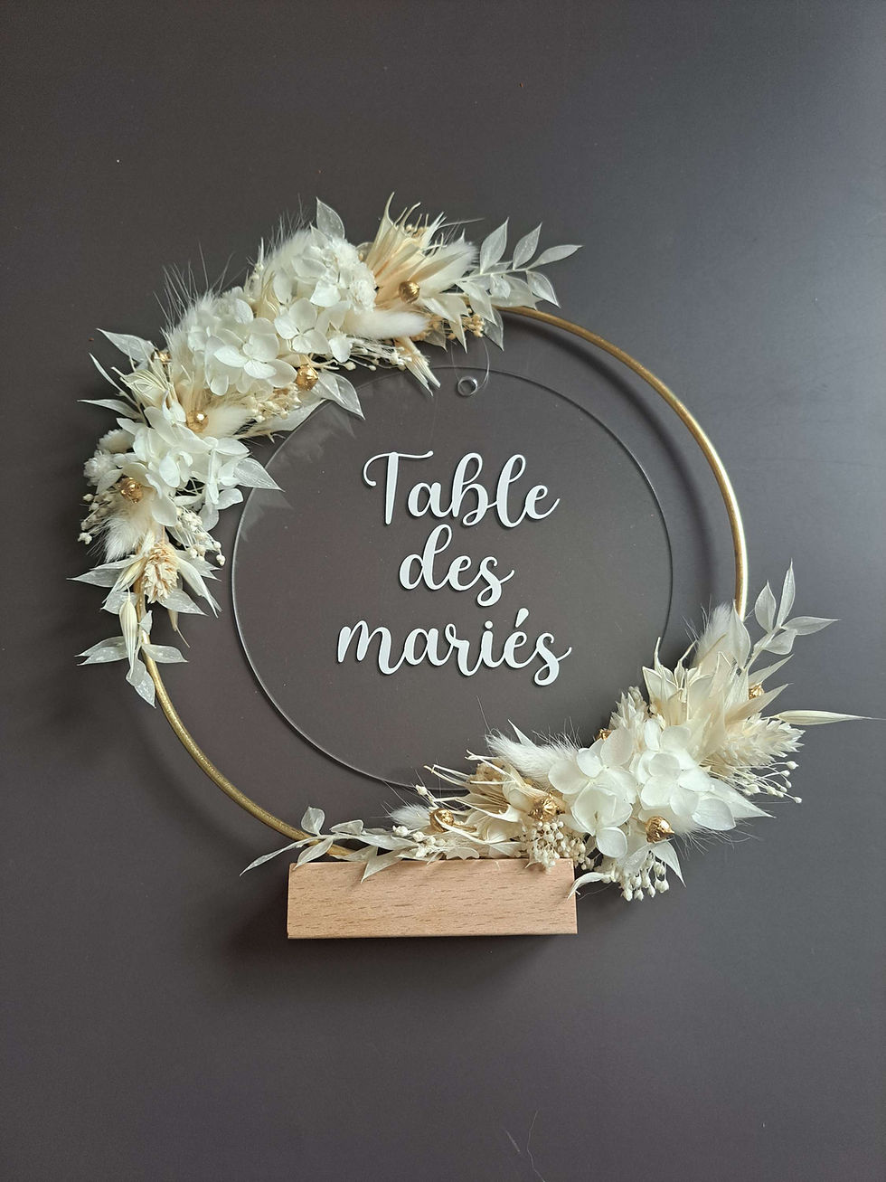 Couronne personnalisable avec support en bois et plexi "Table des mariés"