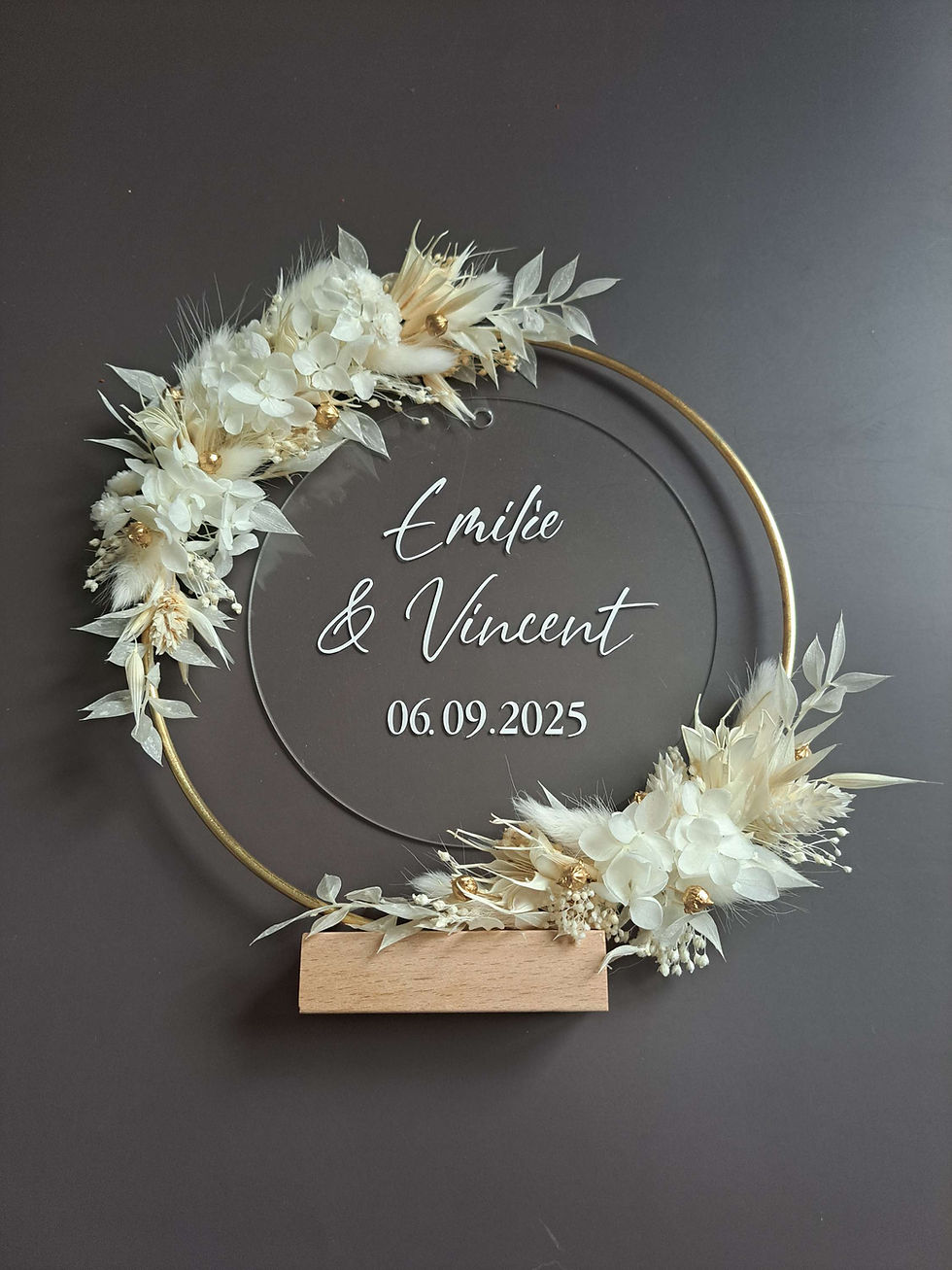 Couronne personnalisable avec support en bois et plexi "Prénoms et date"
